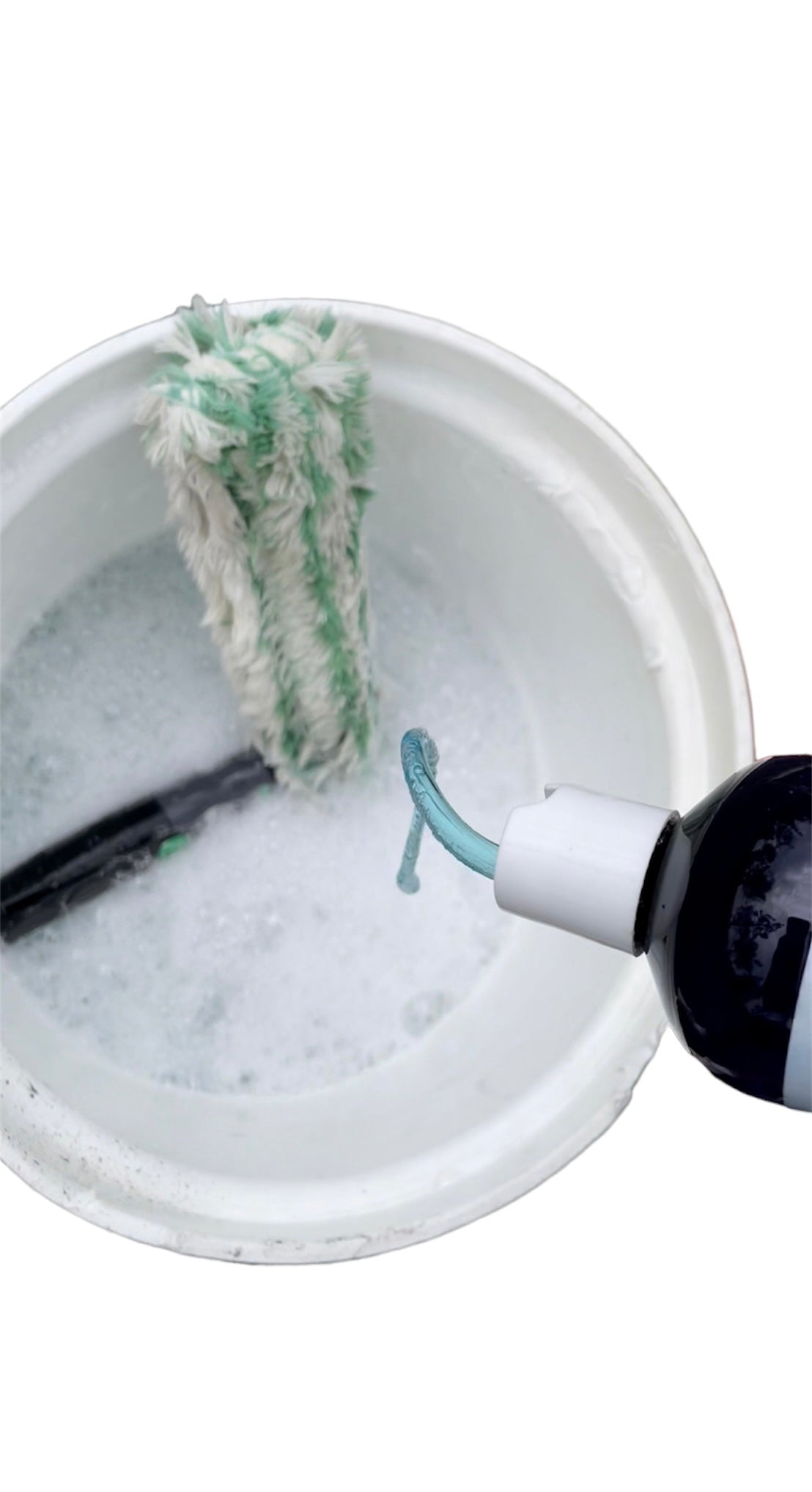 Just add soap to your bucket, 1oz per gallon of water will do!
